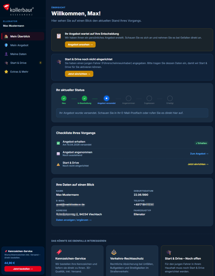 Dadurch bleibt auch der anschließende Antragsprozess vollständig digital. Ohne Papier, ohne Ausdrucke und ohne unnötige Nachfragen. Genau so sollte ein moderner Versicherungsprozess heute funktionieren.